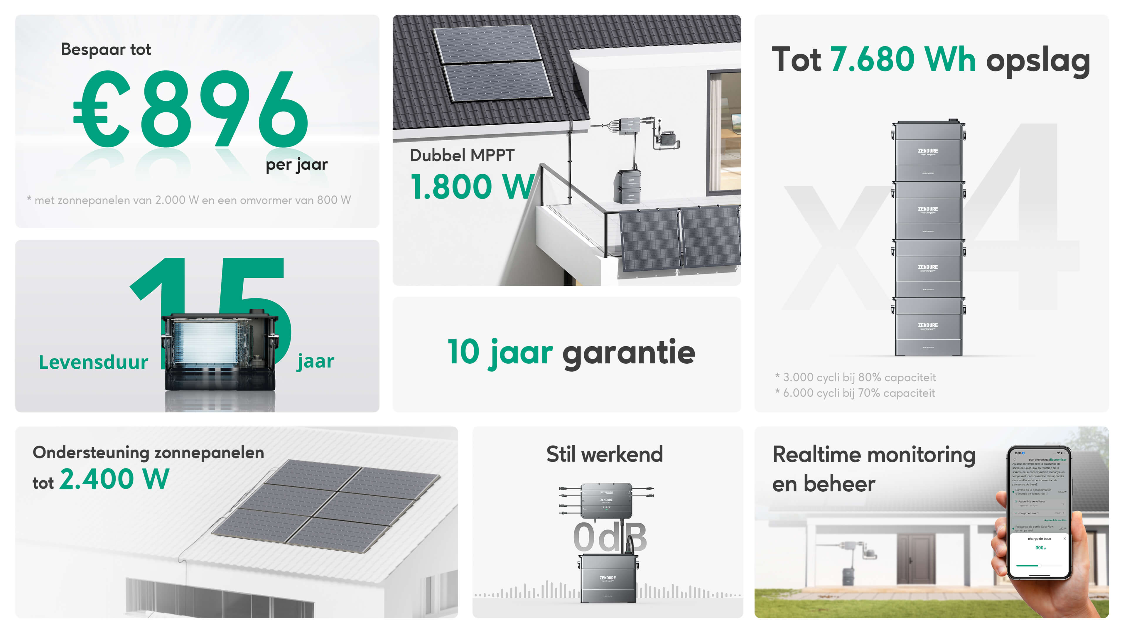 Compatibiliteit met zonnepanelen tot 2.400 W voor optimale prestaties